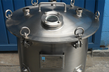Recipiente cerrado a presión que contiene una canastilla perforada que sirve como...
